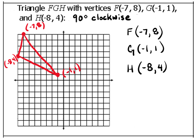 Write the new coordinate for F, once the triangle is rotated clockwise: