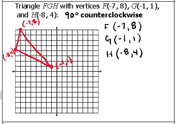 Write the new coordinate for F, once the triangle is rotated counterclockwise: