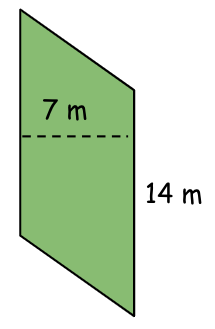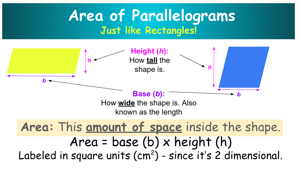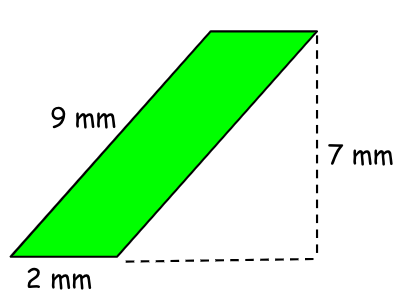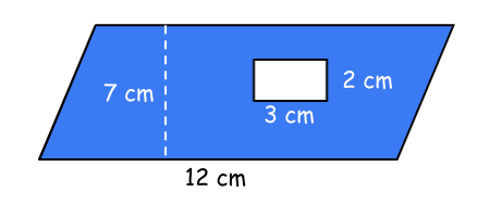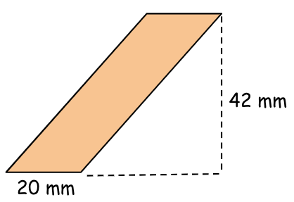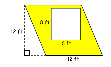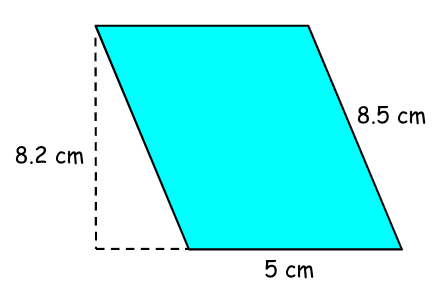 A classroom table in the shape of a parallelogram has a length of 84 inches and a height of 45 inches.