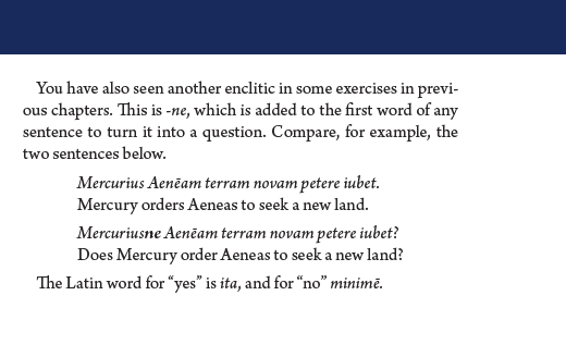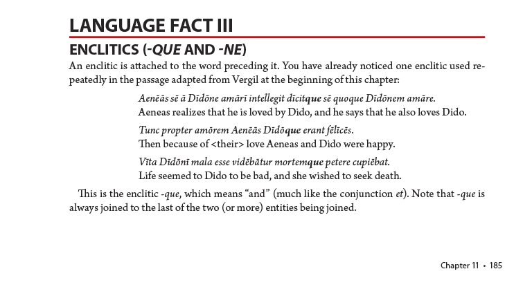 Enclitics, like –que and –ne, are particles that are attached to the end of a word.