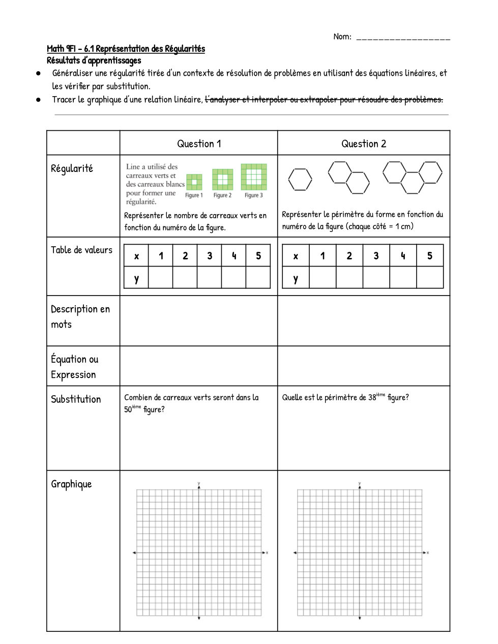 Math 9FI - 6.1 Devoir - Représentation des Regularités