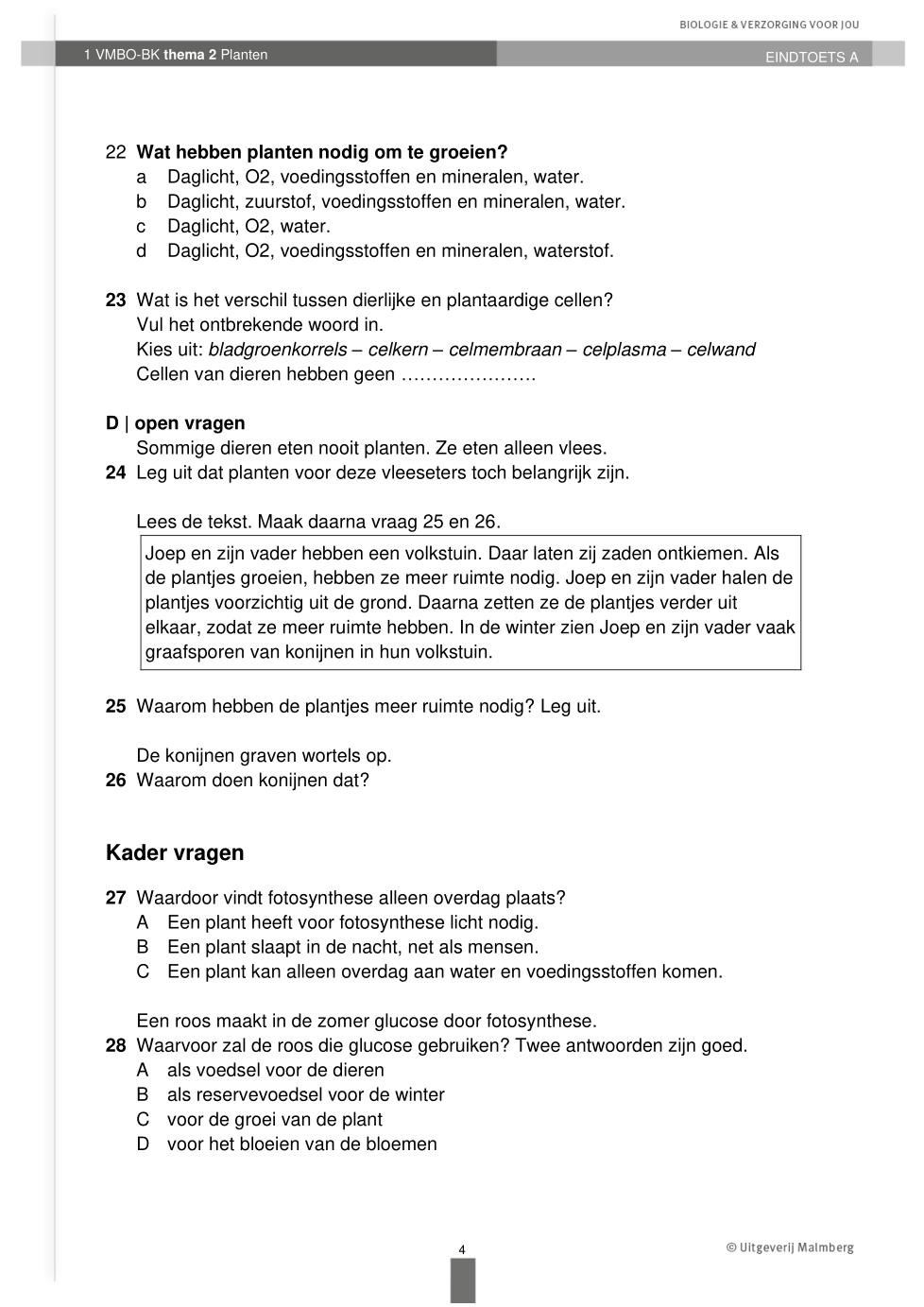 Sommige dieren eten nooit planten. Ze eten alleen vlees.Leg uit dat planten voor deze vleeseters toch belangrijk zijn.