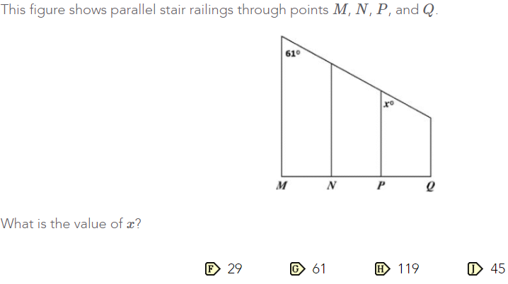 Take a look at the answer choices...and review the size of the angle give (61 degrees)...use your intiution, as this figure is to scale.
