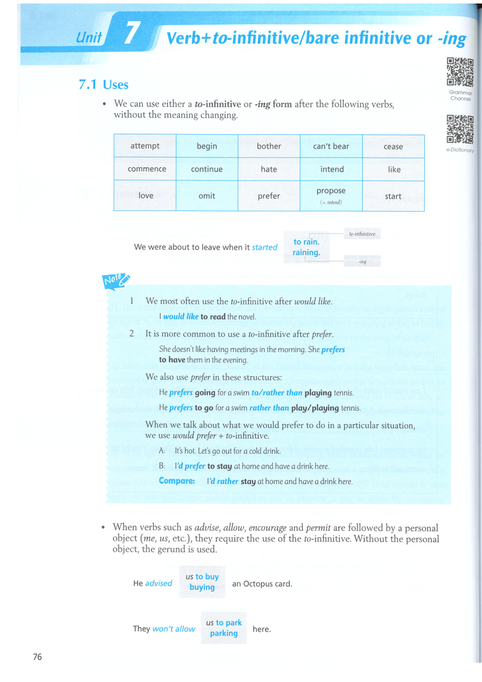 [ENG] [SRL] Unit7 Verb+to-infinitive/ bare infinitive or -ing