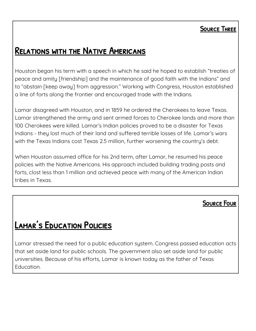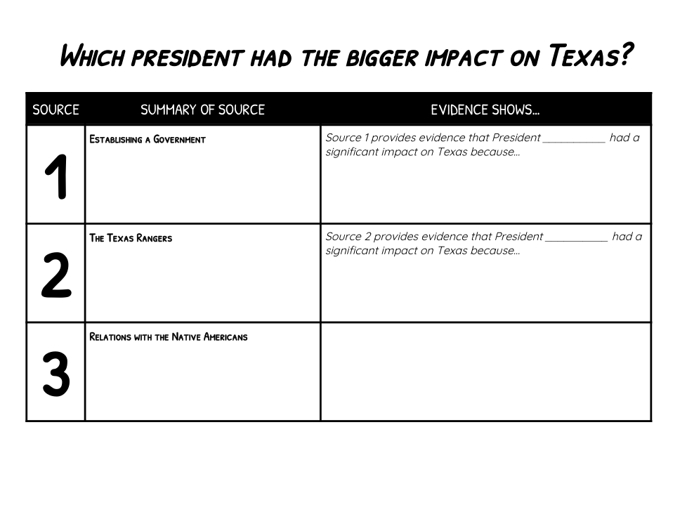 Source 1 provides evidence that President __________ had a significant impact on Texas because…