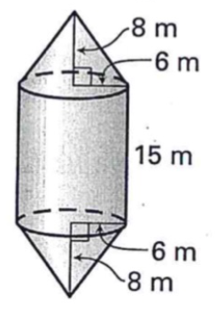 Find the surface area of the solid. The cylinder and cones are right. Round to the nearest tenth.