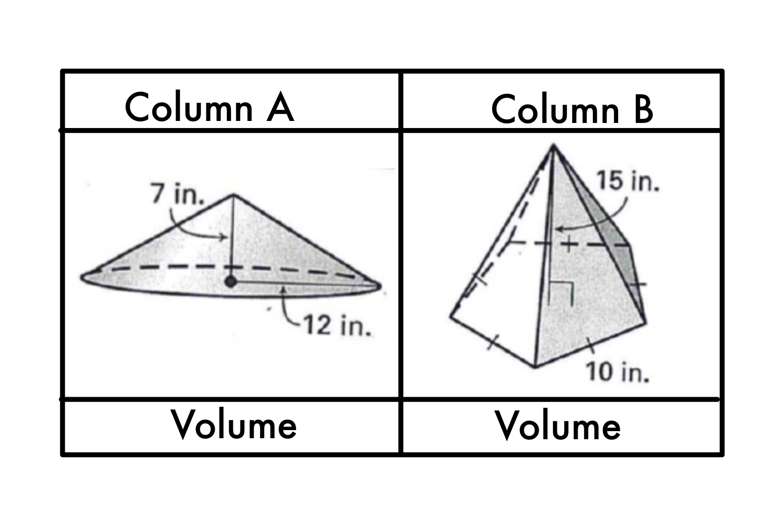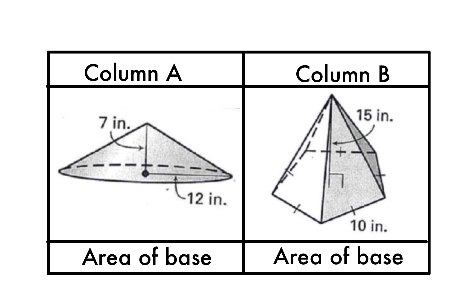 Use the diagram of the solids to choose the statement below that is true about the given values.