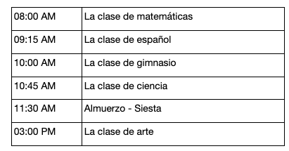 Directions for questions 7-10. Joaquín's mother is looking at his schedule for school. Does she know what class he has at the following times? Listen as his mother reads his schedule. Mark A if her statements are true or B if her statements are false.