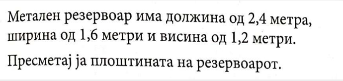 Пресметај ја плоштината на квадарот и реш ението изрази го во