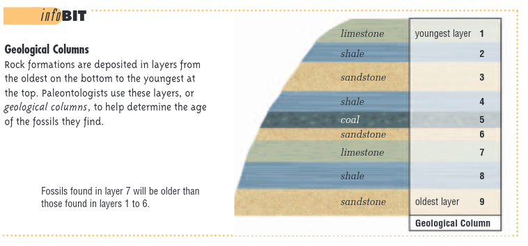 Geological columns are formations in sedimentary rock that help scientists to determine the age of thefossils they find. Fossils found in column 7 will be ...