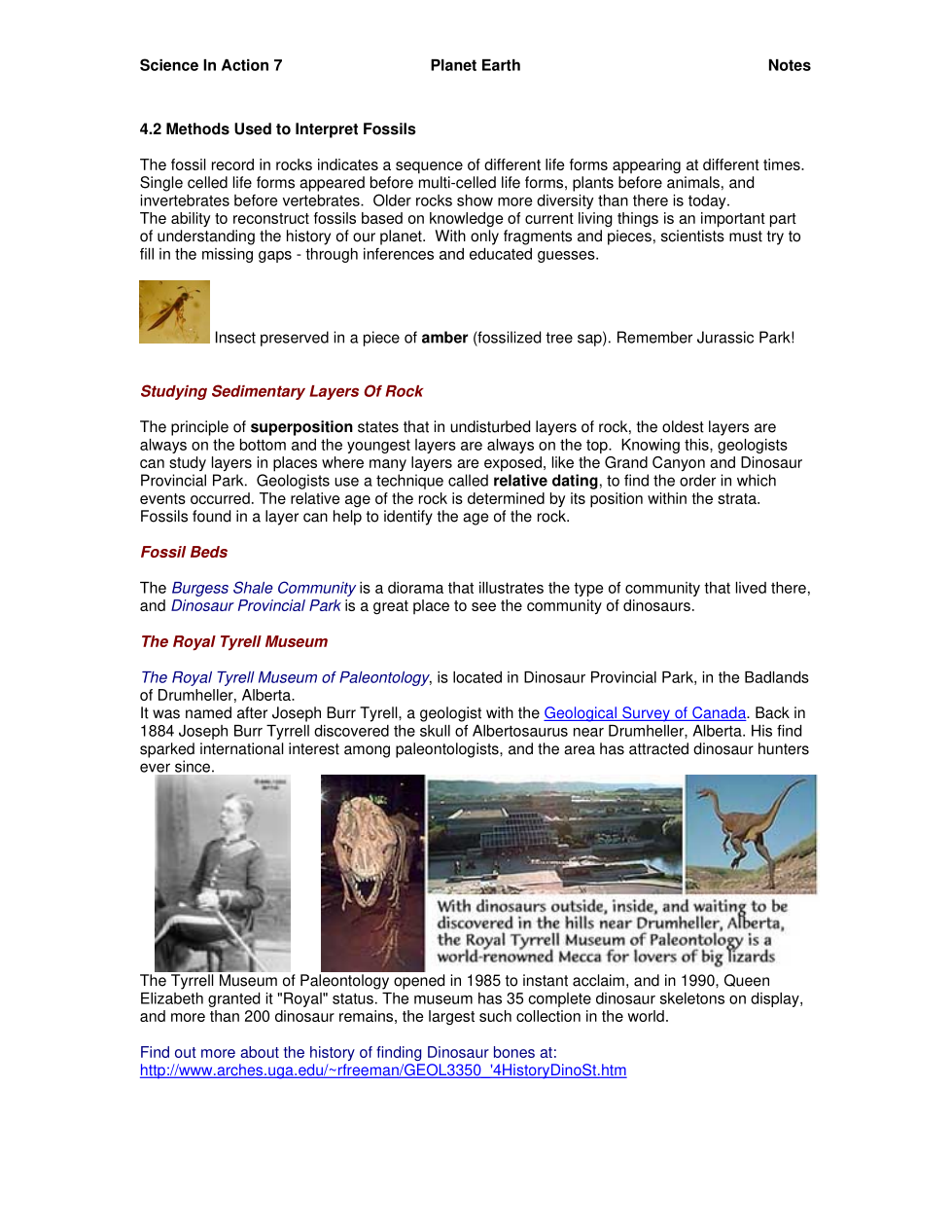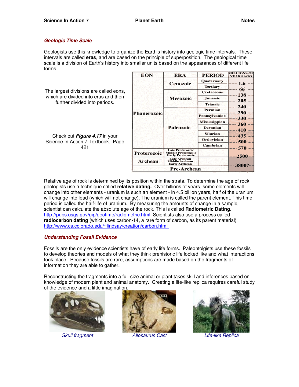 These layers called strata revel certain fossils that lived in certain time periods. These fossils are known