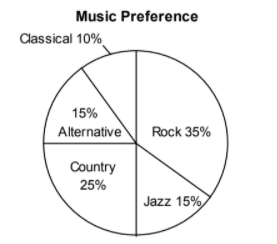 The circle graph shows the music preferences of a random sample of radio listeners. What percent of people surveyed prefer Jazz and Rock?