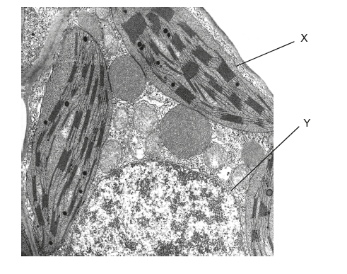 Which feature of the cell in the micrograph is consistent with the endosymbiotic theory?
