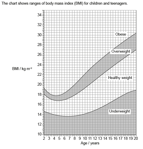 A 9-year-old boy has a height of 120 cm and weighs 28.8 kg. What weight category is he in according to his BMI?