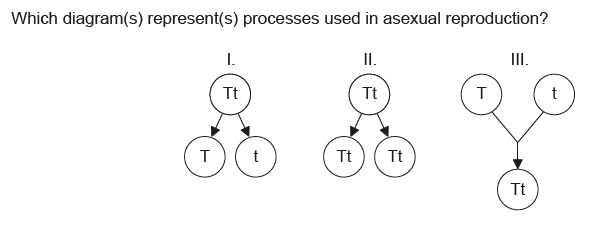 Which diagram(s) represent(s) processes used in asexual reproduction?