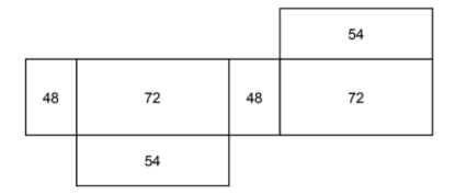 This is the net of a right rectangular prism. The "area of each face", in square centimetres, is given.