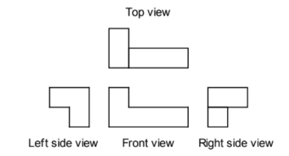 These are views of an object built using linking cubes. Which sketch of the object matches these views.