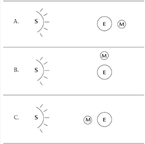 Which diagram(s) BEST represent(s) the position of the Moon during a New moon?