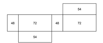 This is the net of a right rectangular prism. The area of each face, in square centimetres, is given.