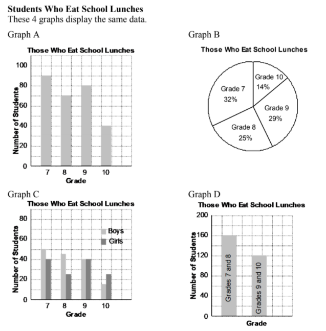 Which type of graph is most appropriate for finding the percent of Grades 8 and 9 students who eat school lunches?