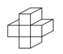These are views of an object built using linking cubes. Which sketch matches what the object looks like.