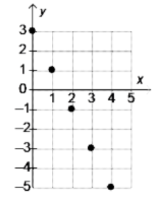 Which graph shows the relation y = -2x + 3 for integer values of x from 0 to 4