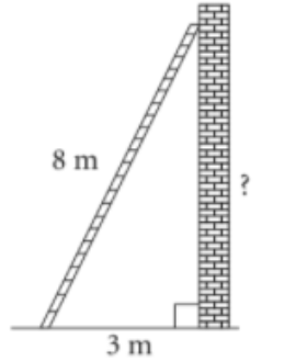 An 8-m ladder leans against a wall. How far up the wall does the ladder reach if the foot of the ladder is 3 m from the base of the wall?