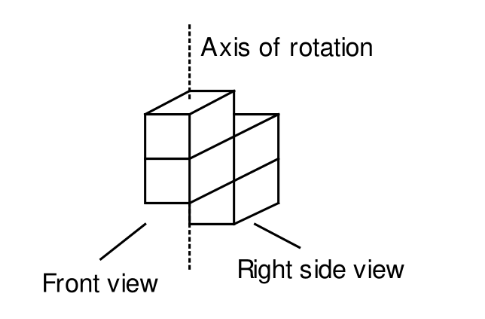 Which one of the diagrams below is the right-side view of the object after the rotation?