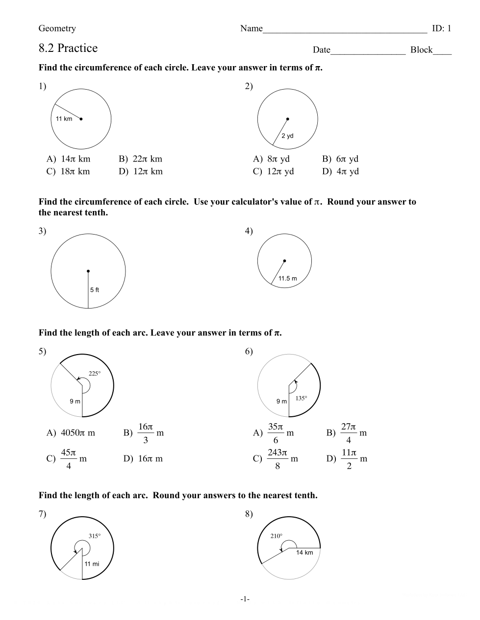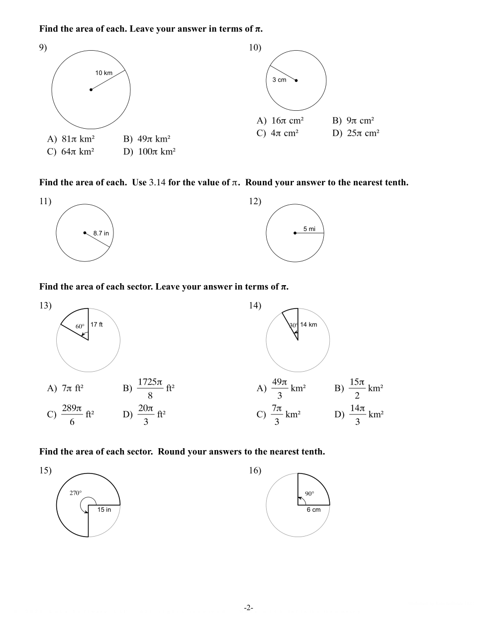 8.2 Area, Circumference, Sectors, and Arc Lengths