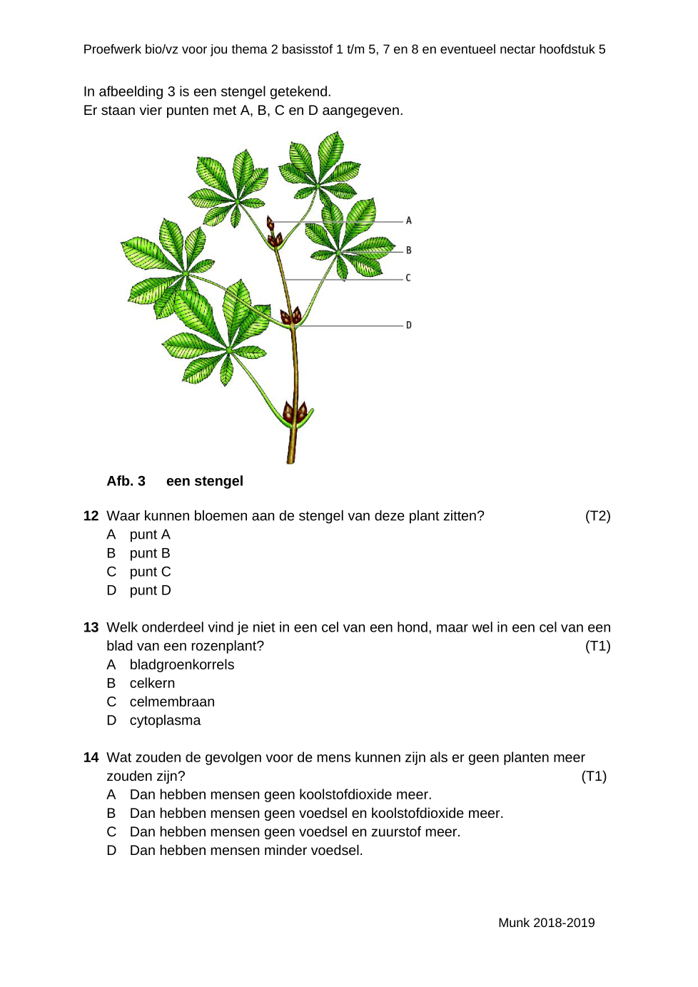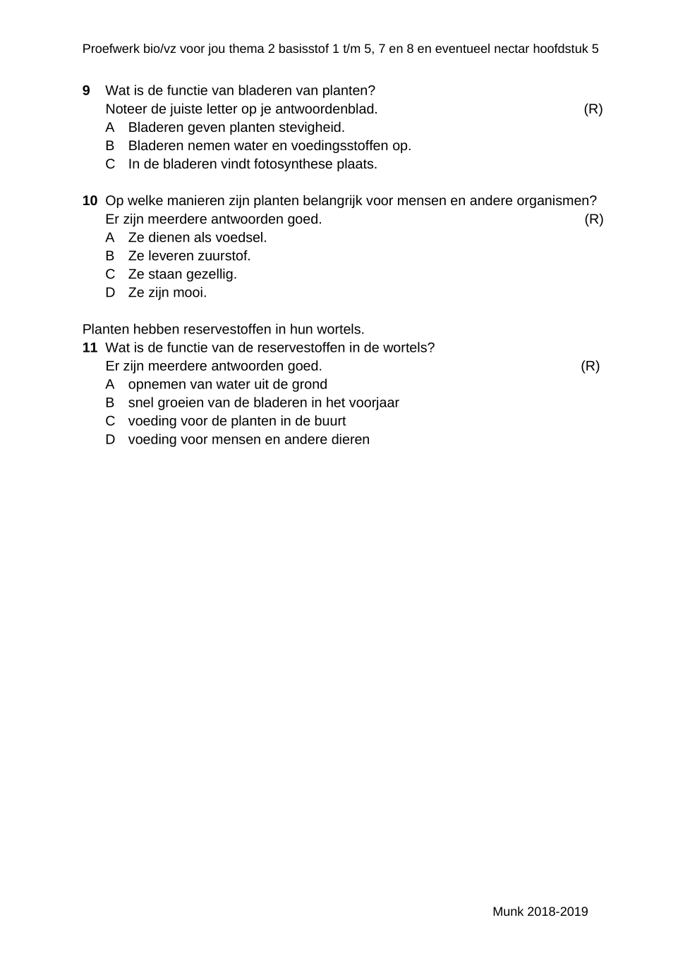 Welk antwoord is juist. Klik de juiste letter aan.
