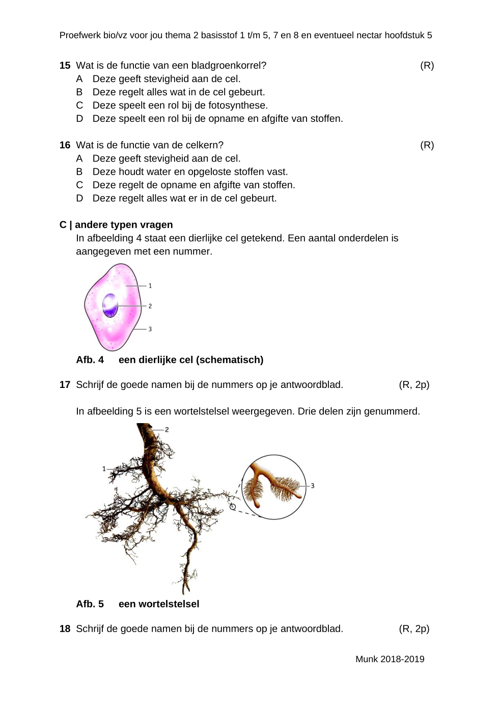 Welk onderdeel vind je niet in een cel van een hond, maar wel in een cel van een blad van een rozenplant?