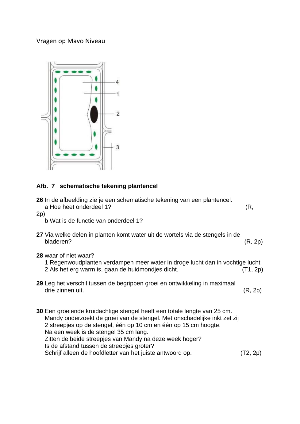 Van welke onderdelen van een plant komt water uit de wortels via de stengels in de bladeren?