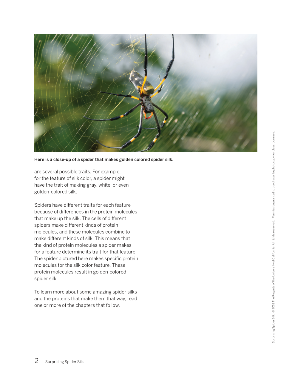 The kind of protein molecules a spider makes for a feature determines its trait for that feature.