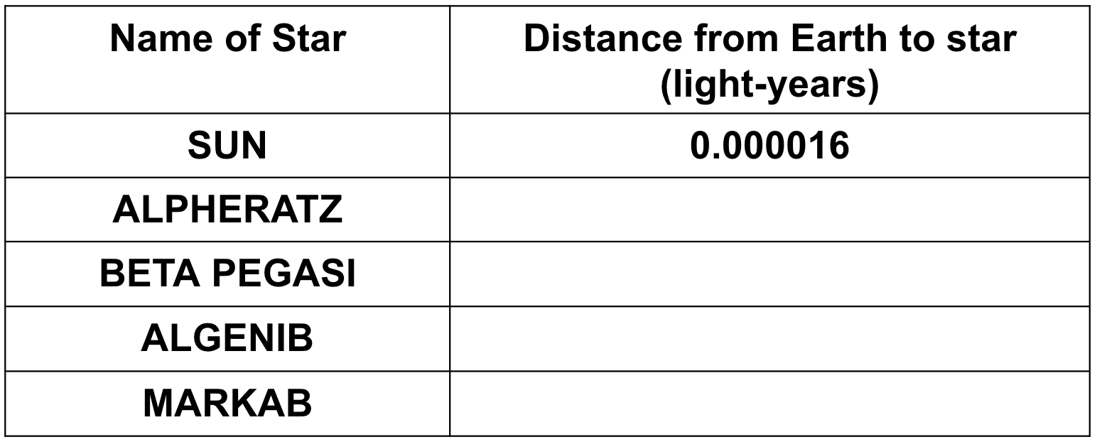 In today’s investigation you will collect data about the distance from Earth to different stars, like the sun and also the stars in the constellation Pegasus!