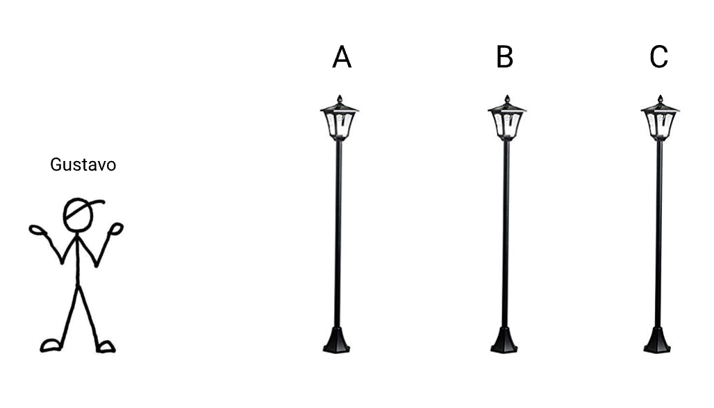 π The picture above shows a row of street lamps. Which street lamp would appear brightest to Gustavo?