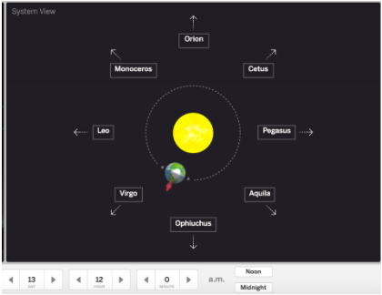 The simulation shows in the sky view ______________________.
