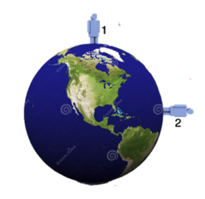 💚 The diagram shows two people standing on Earth. Is Person 2 going to fall off the Earth? Why or why not?
