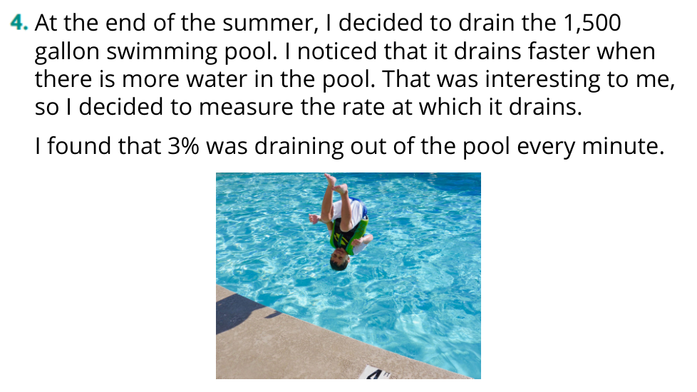 Koresha icyitegererezo cyawe mubibazo 4 kugirango umenye igihe pisine izaba irimo ubusa. Emeza igisubizo cyawe.
