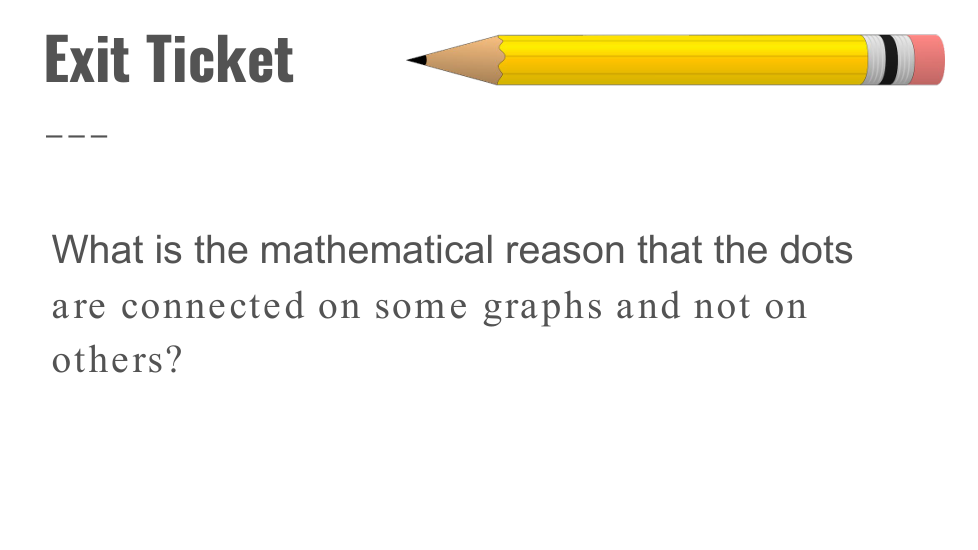 What is the mathematical reason that the dots are connected on some graphs and not on others?
