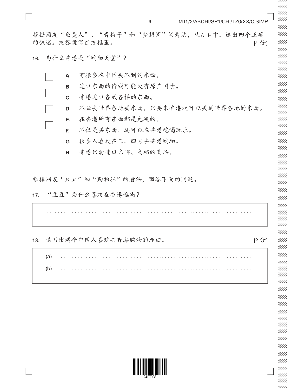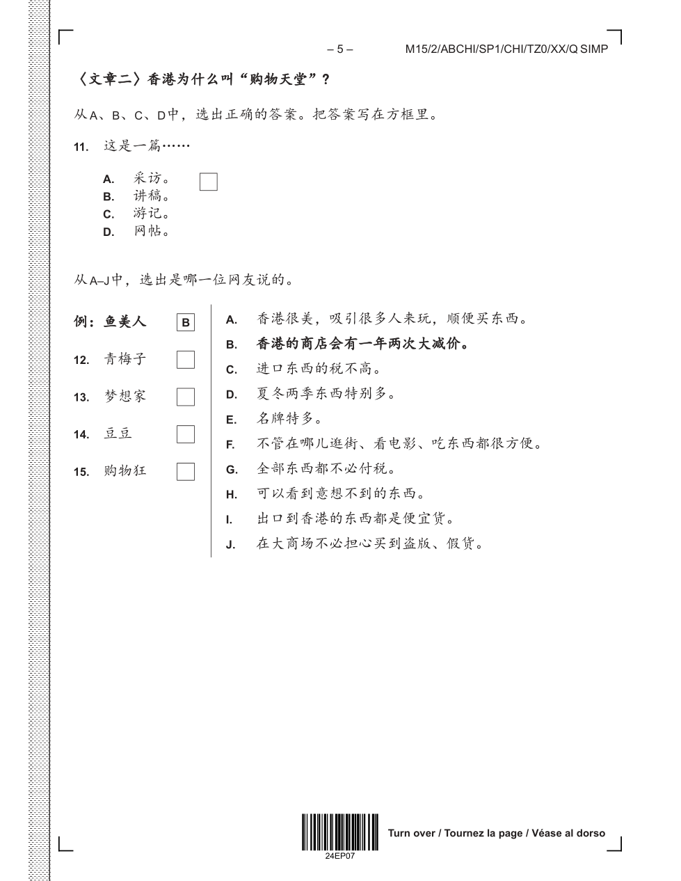 (2015 May)Chinese B – Standard level – Paper 1