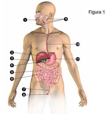 A pepsina atua sobre prótidos e é produzida pelo órgão representado na figura 1 pelo...