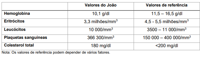 O João realizou análises de rotina ao sangue, tendo obtido os seguintes resultados: