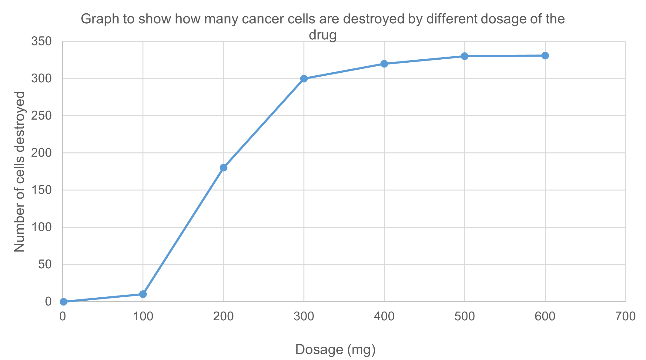 You do: Describe, in detail, how the number of cancer cells destroyed changes when the dosage of a drug changes (3 marks)