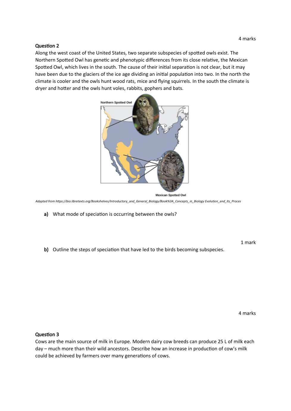 Question 2. b) Outline the steps of speciation that have led to the birds becoming subspecies.
