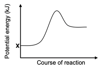 X represents the potential energy of the products formed during the reverse reaction