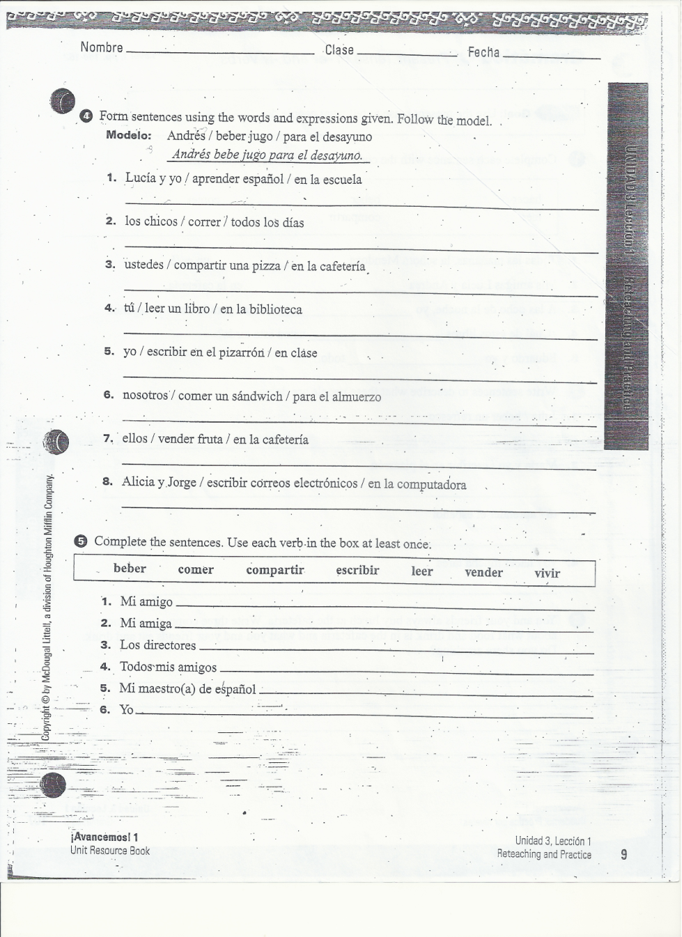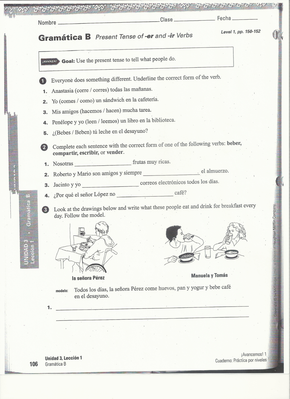 On the second page make sure you type a complete sentence for each of your answers, using accented letters and tildes as needed (they're in the questions for you to copy and paste). I will have to grade those answers when this assignment closes.