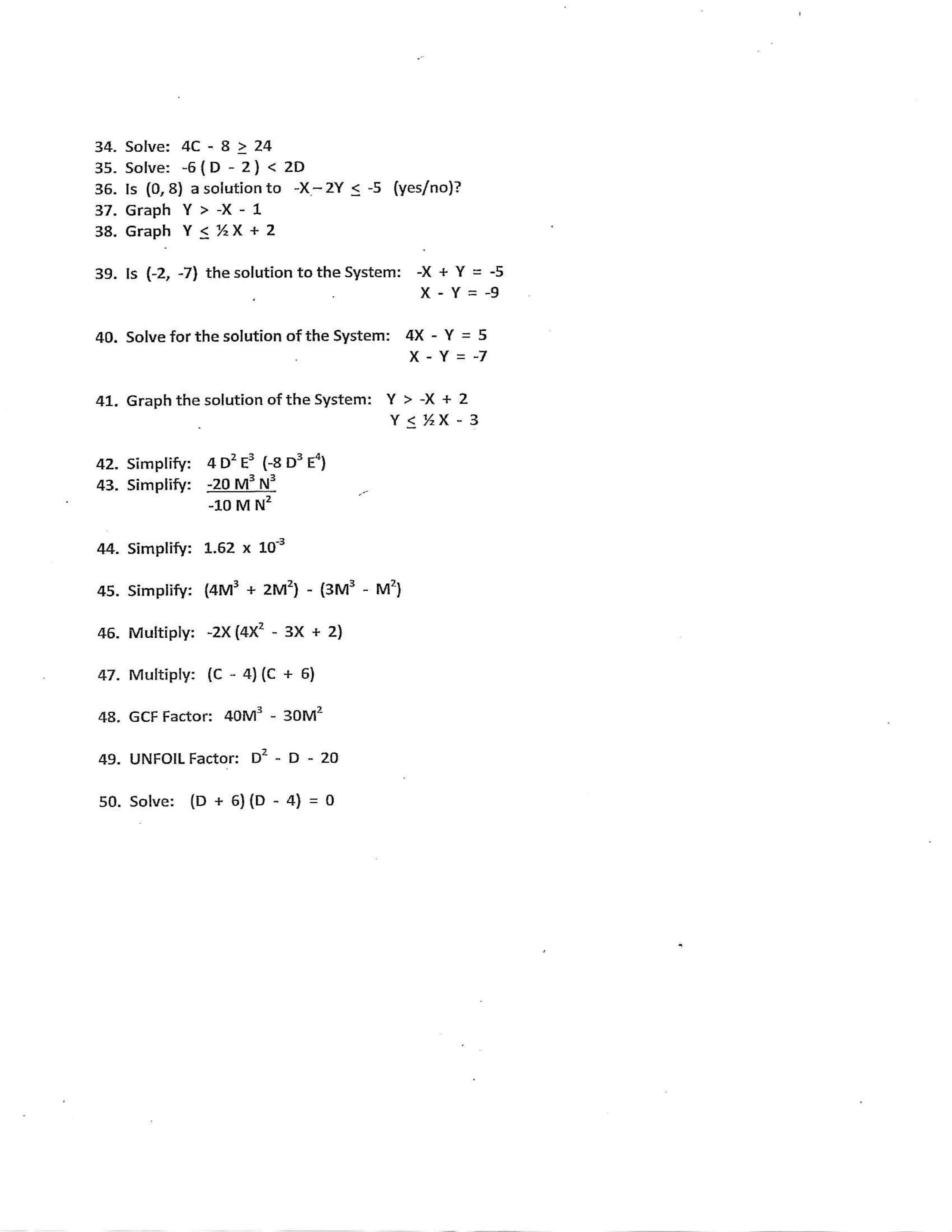 #36: Is (0, 8) a solution to -x - 2y ≤ -5