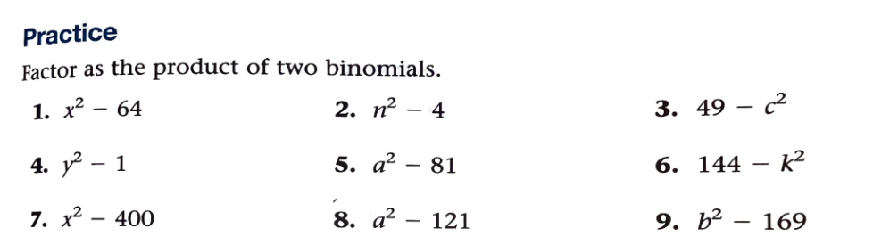 12.10 Factoring the Difference of Two Squares #1-6