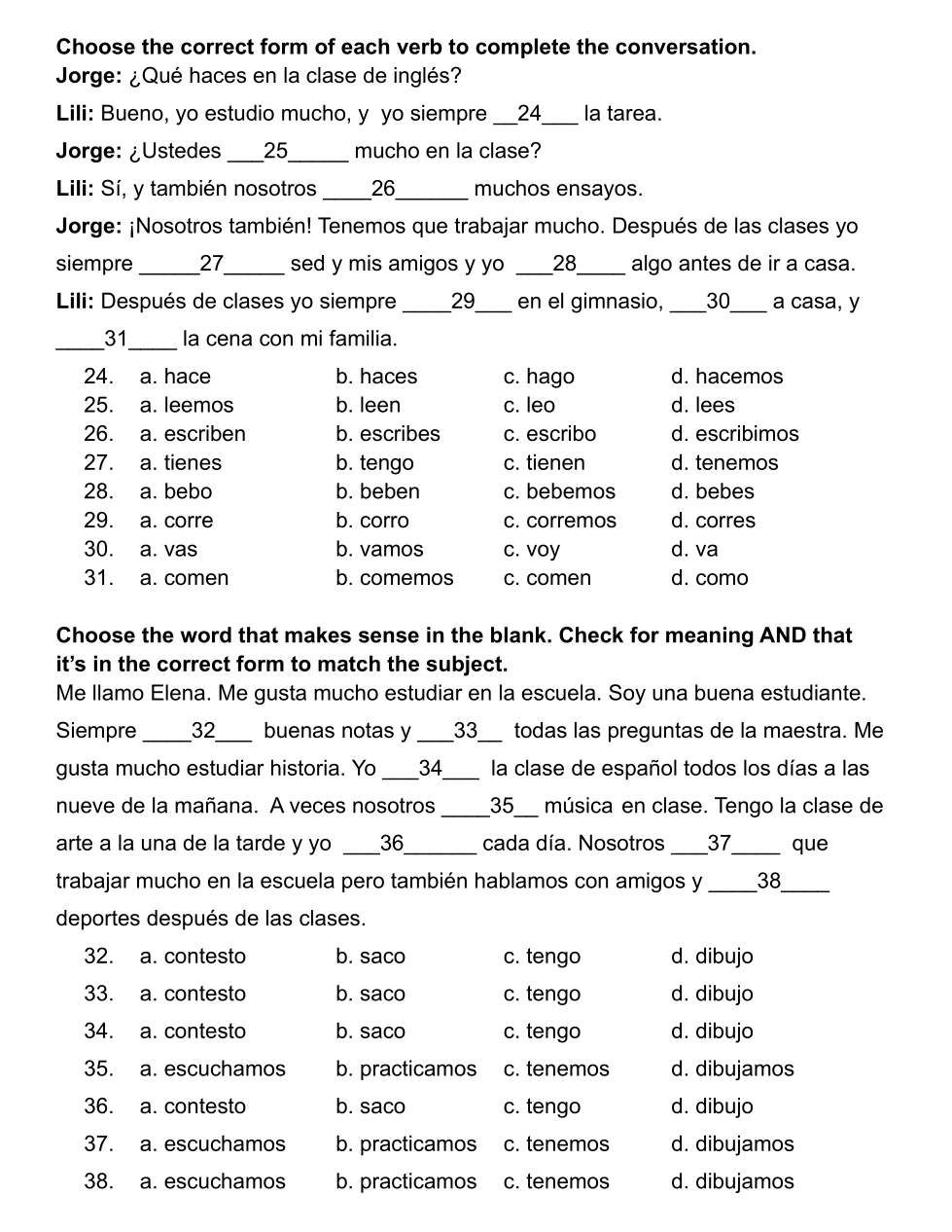 Choose the correct form of the verb that makes sense in the blank in the story.