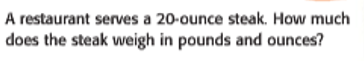 Sample Answer: 4 lb 8 oz